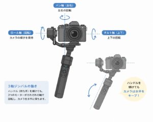 ジンバルというのは、カメラの手ブレを防ぐ装置のことです。