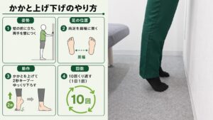かかとを上げ下げすることで、足裏のアーチ、いわゆる土踏まずのカーブを支えている筋肉が鍛えられます。